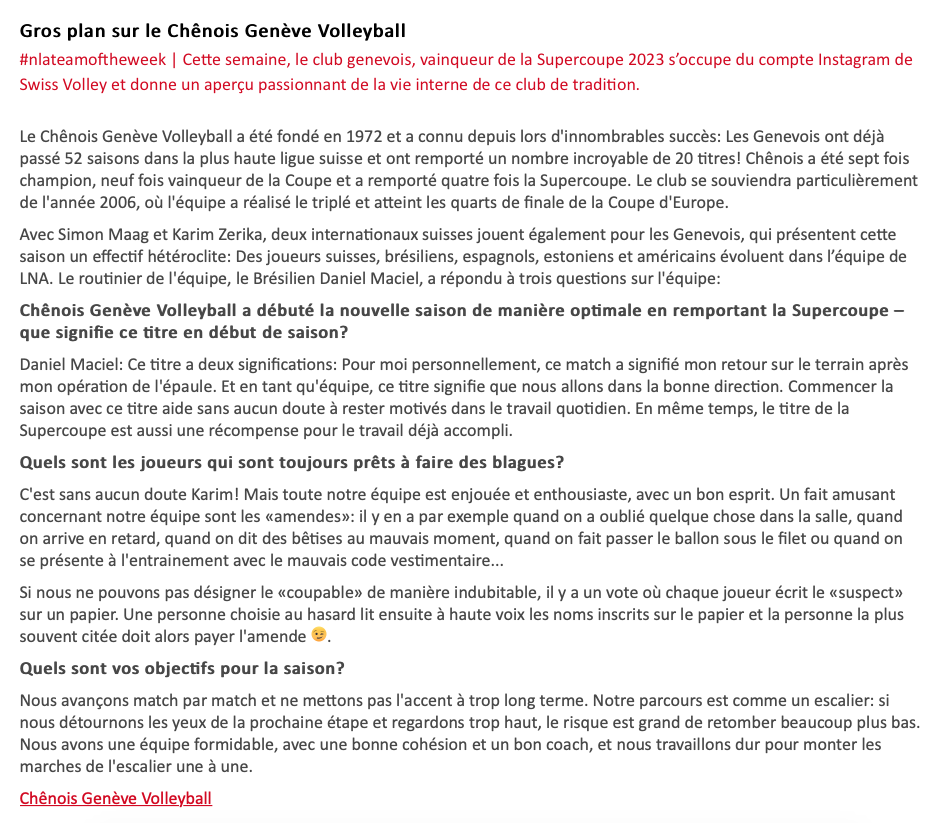 Gros plan sur le Chênois Genève Volleyball